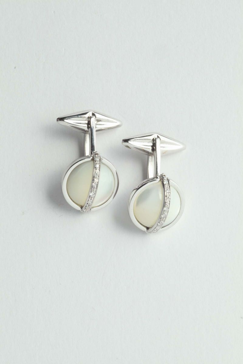 in oro 18Kt con diamanti e madreperla taglio cabochon