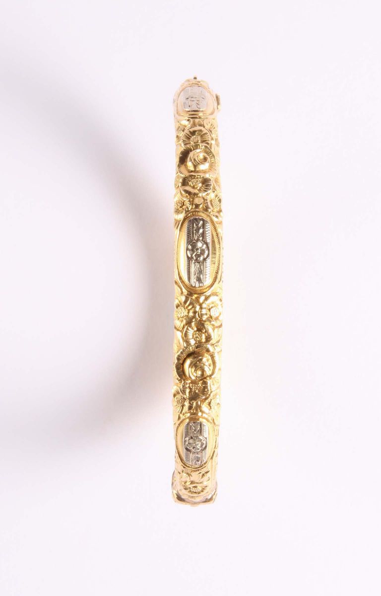oro bianco e giallo 18Kt a canna vuota. XX secolo, prima metà