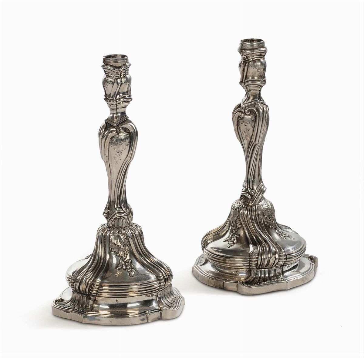 Coppia di candelieri in argento, punzone Torretta 1770