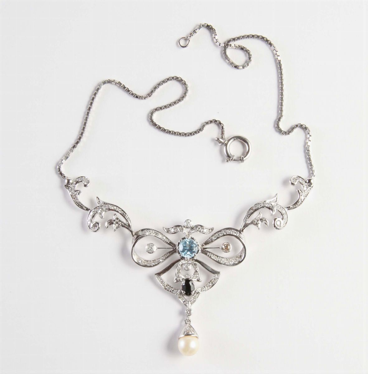 Girocollo con topazio azzurro e perla
