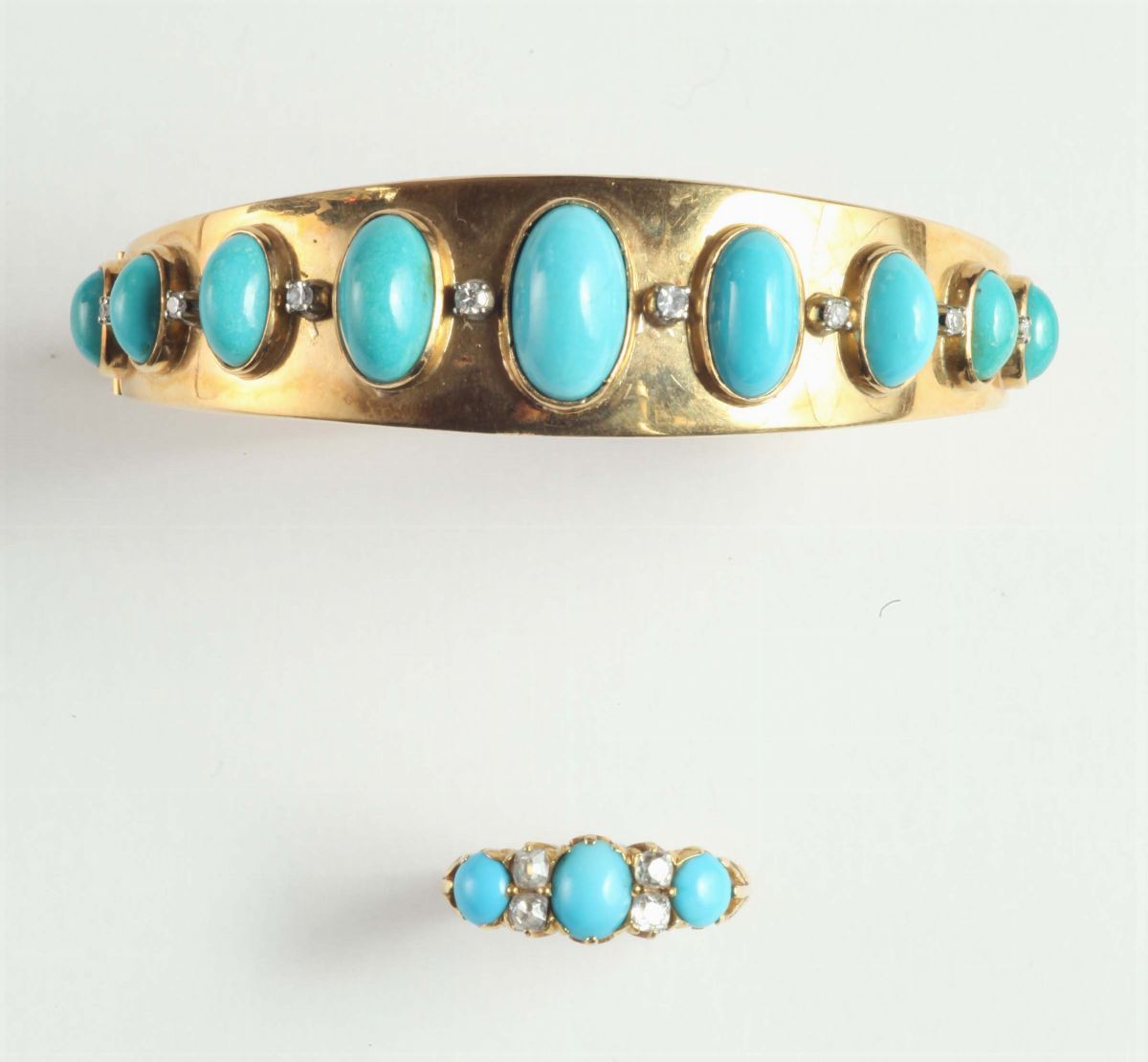 da bracciale e anello in oro con turchesi. XIX secolo, fine