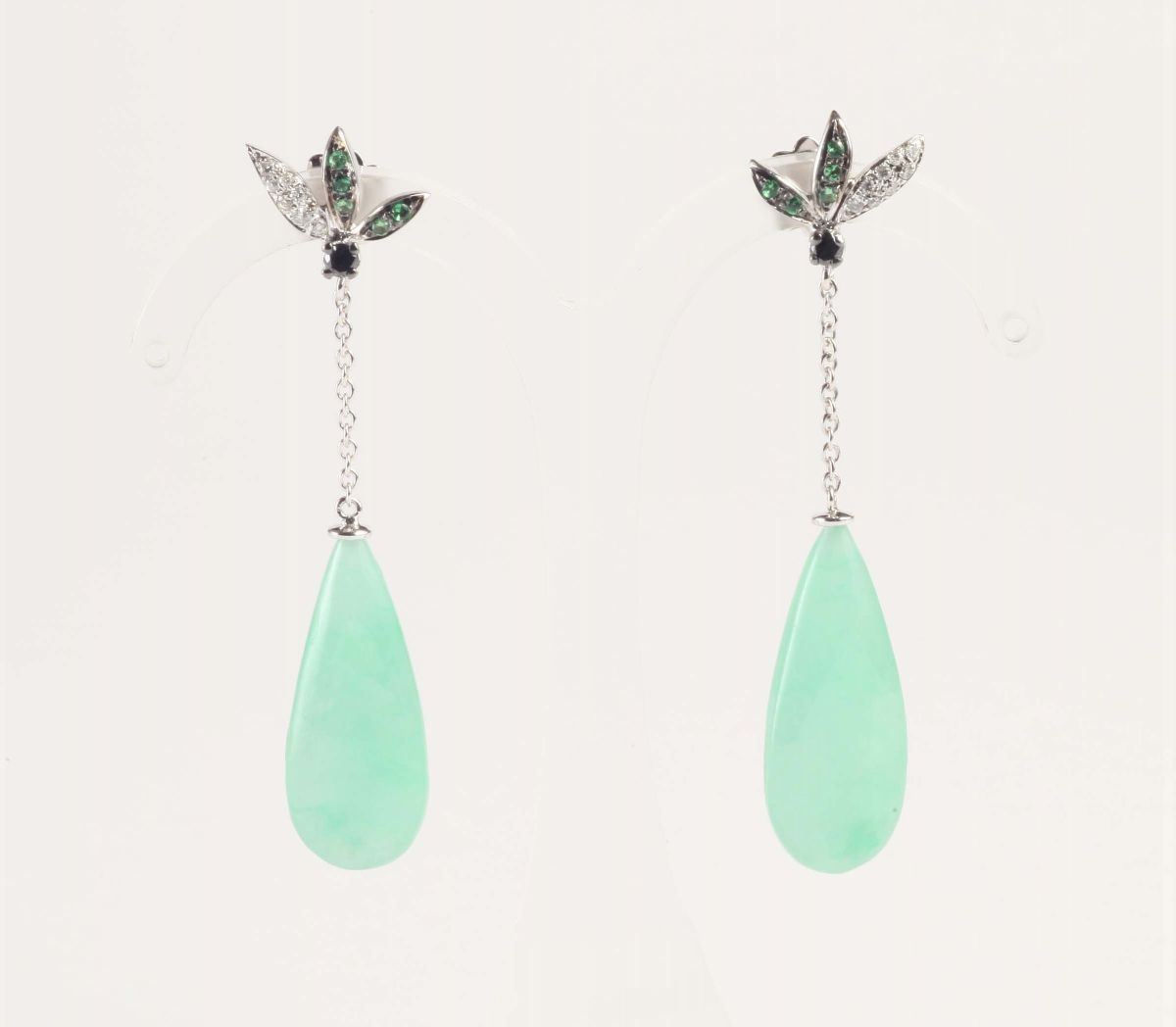 top in oro bianco 18Kt con diamanti bianchi, neri e tsavoriti