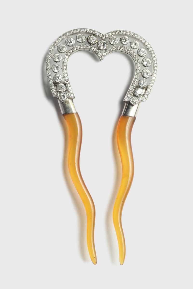 in platino, diamanti taglio a brillante e tartaruga bionda