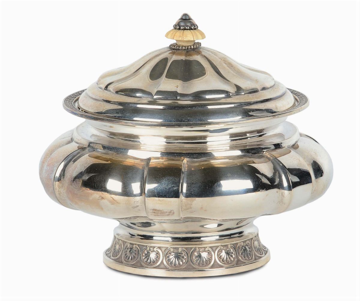 Scatola portadolci barocchetto in argento 950, marchio, A Brandis Roma