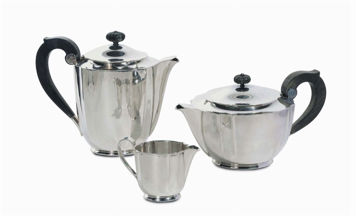 composto da teiera, lattiera e caffettiera, gr. 1150 circa