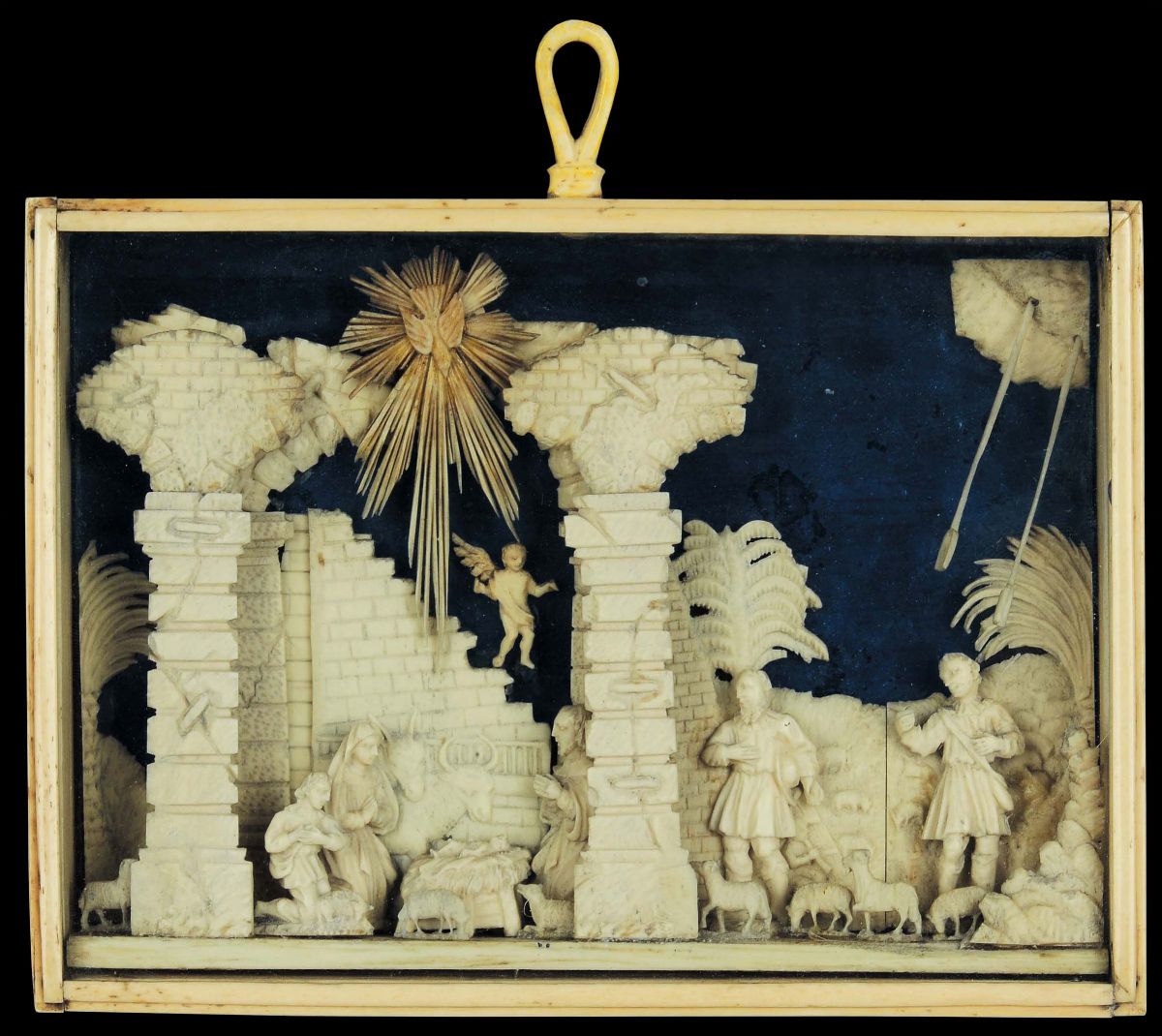 Coppia di composizioni in avorio scolpito raffiguranti la Natività e la Resurrezione, Maestranze trapanesi (Bottega dei Tipa), metà del XVIII secolo