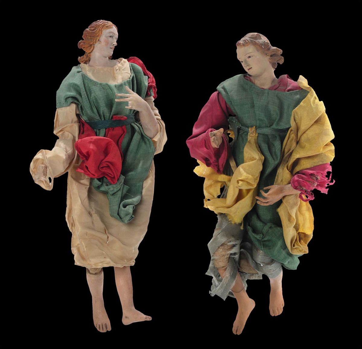 Due figure presepiali di angeli con vesti in seta colorata, Napoli XVIII-XIX secolo
