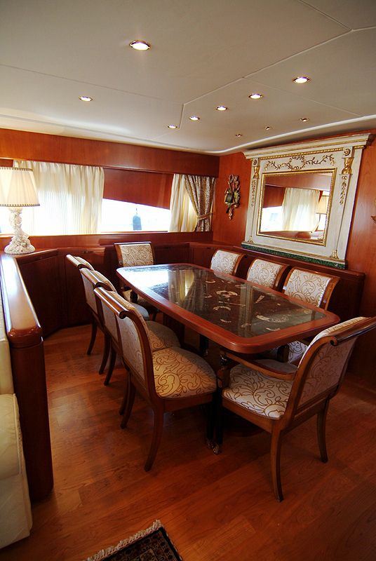 Diano was one of the last boatyard to build in wood: double plywood planking 40 mm for the hull bottom and 20 mm for the sides and the superstructure, followed by a triple West System treatment and double painting cycle by Boero and AWL Grip. All this make an exceptionally strong craft splendidly finished inside with the most sophisticated veneer by he master handicrafts of he yard.