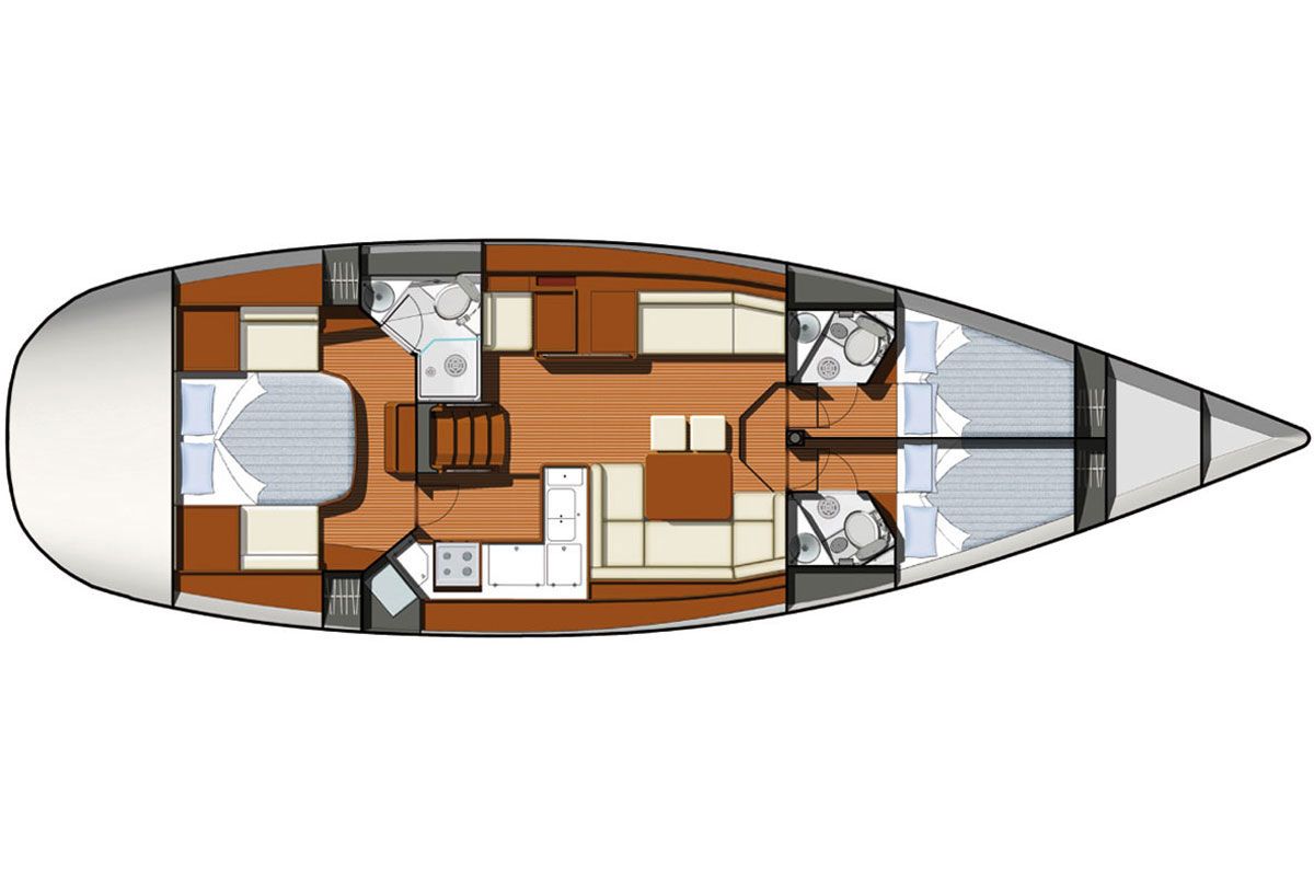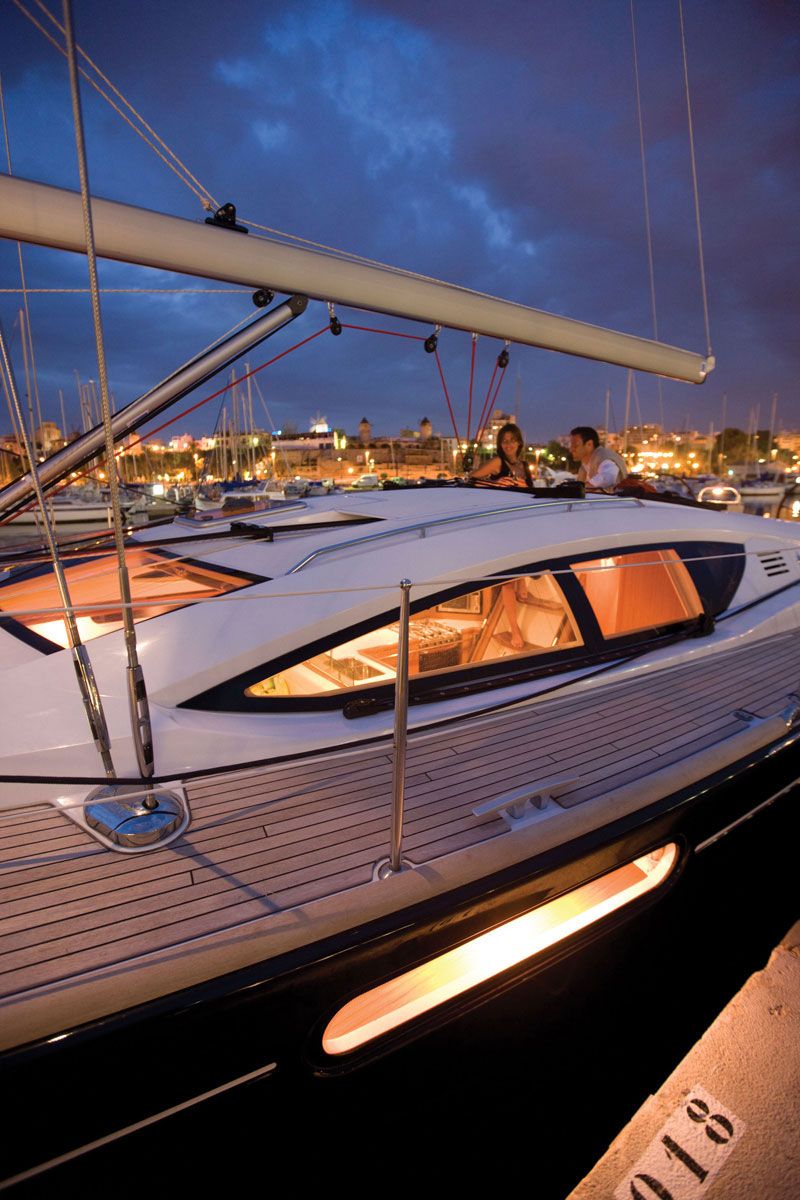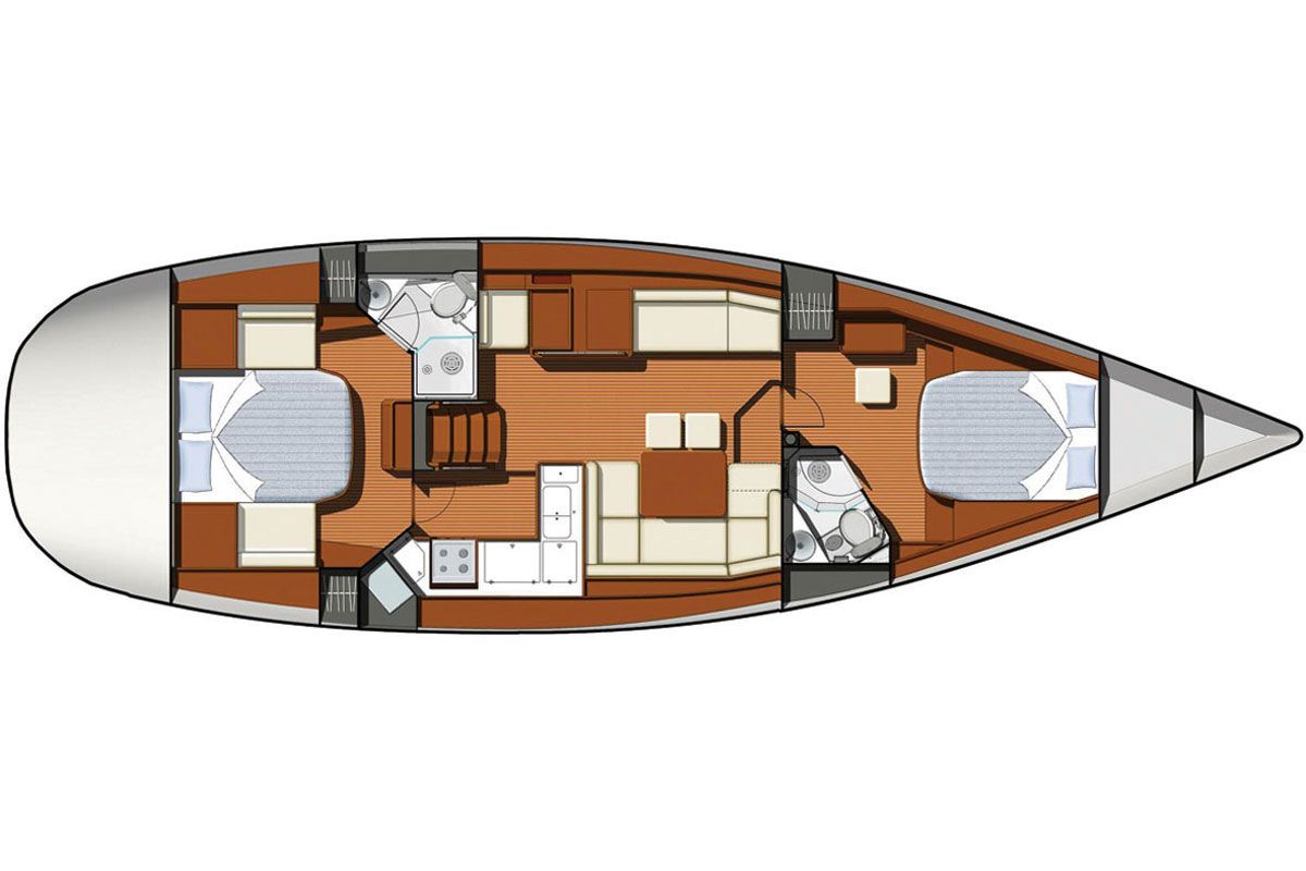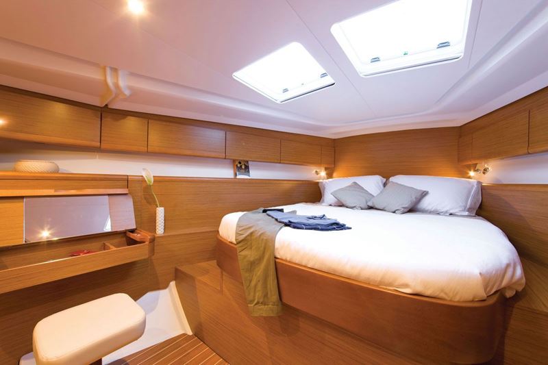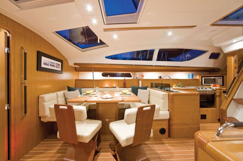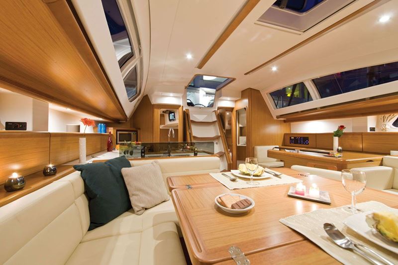 The 50 DS is the successor of the previous 49 and has been developed by the designers Philippe Briand for the performance side and Vittorio Garroni for the style, decoration and comfort, and project-managed by the Jeanneau design office. Al the controls are rationally placed in the cockpit, which is divided in three functional areas, for the helmsman, for good time around he huge table and for sunbathing. The powerful winches and the electric-powered one ease all the manouvers.