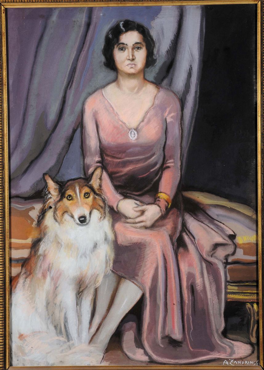 Adelina Zandrino (1893-1994) Ritratto femminile con cane