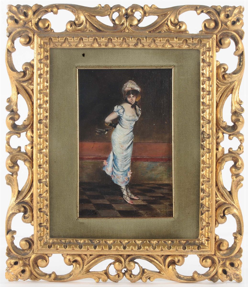 olio su tavola, cm 25x15, firmato in basso a destra