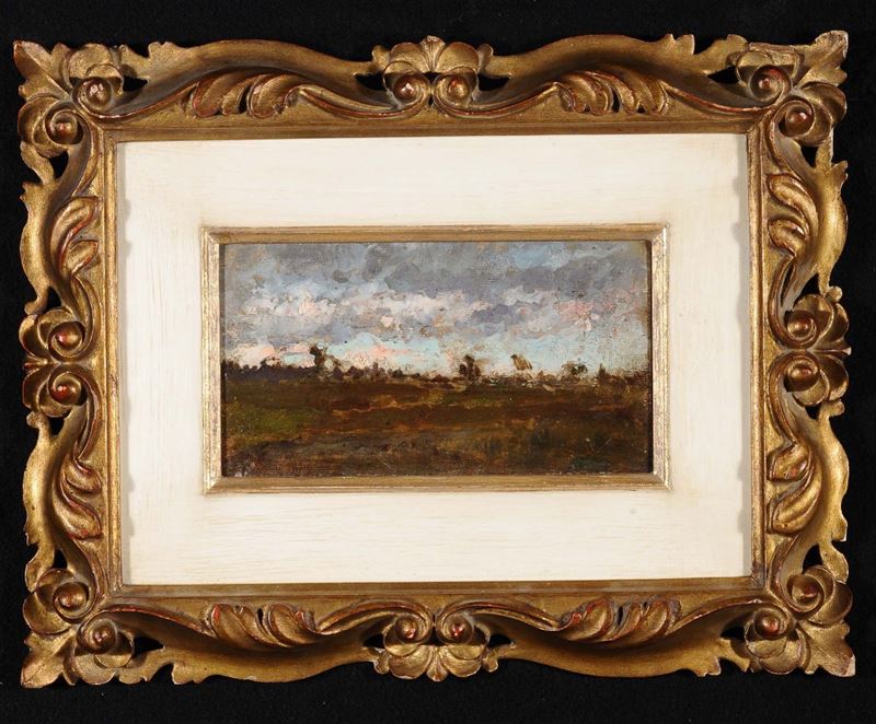olio su cartone, cm 10,5x18,5, firmato in basso a sinistra
