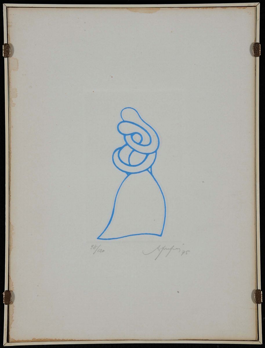 incisione colorata su carta, firmata e datata 1975 in basso adestra, es. 98/120