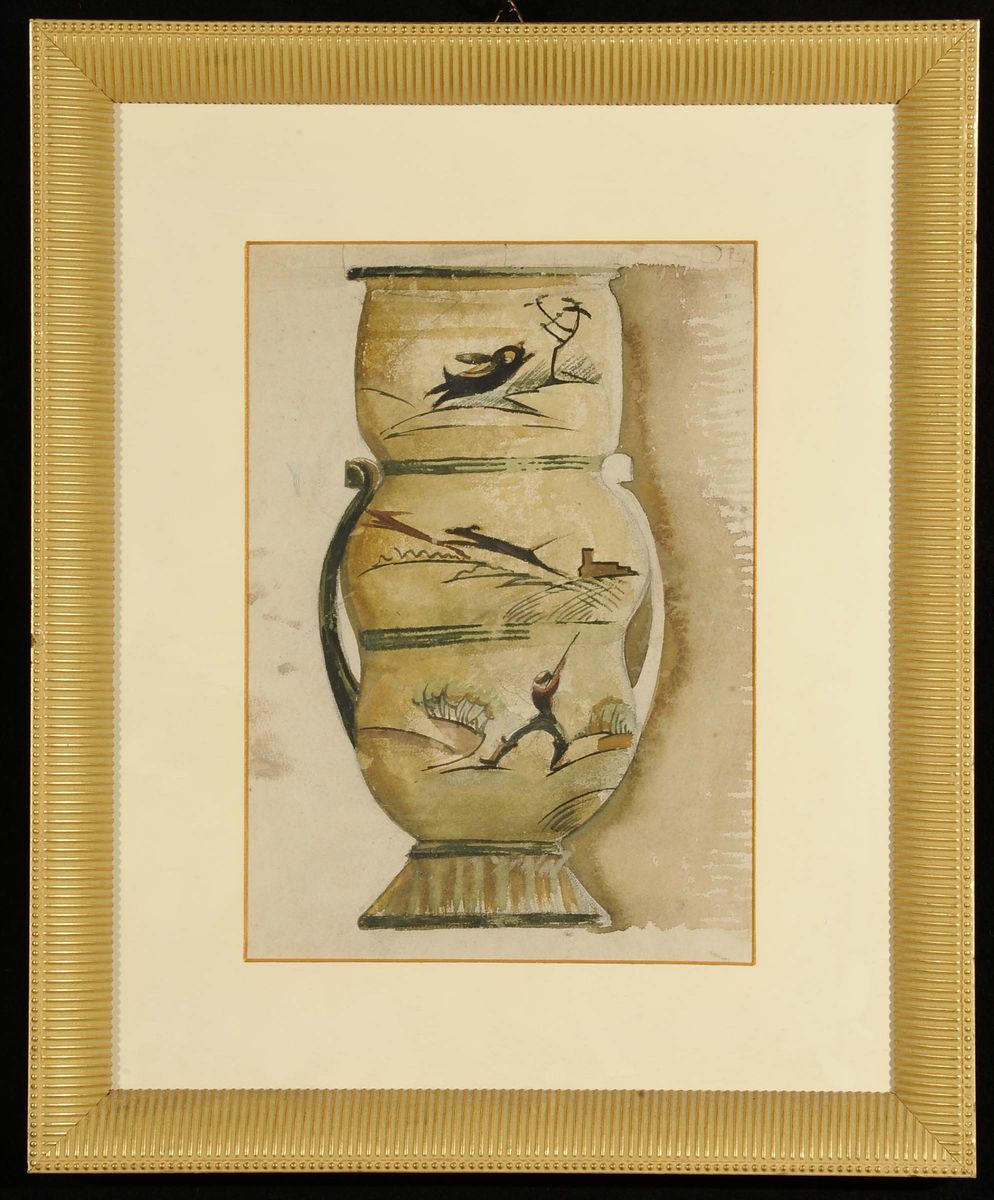 Anonimo del XX secolo Studio per vaso in ceramica con scene di caccia