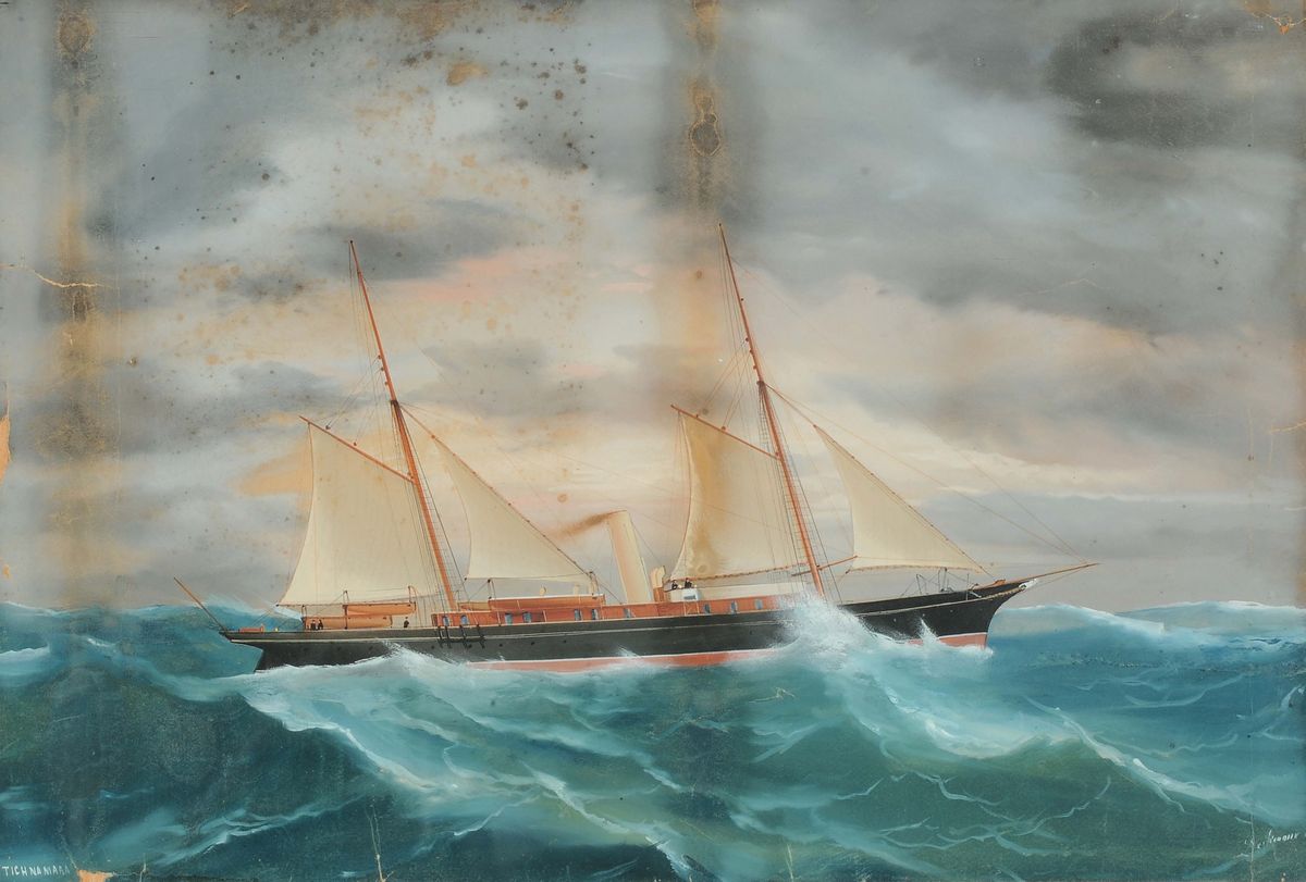 Ritratto dello steam yacht Tighnamara in mare aperto