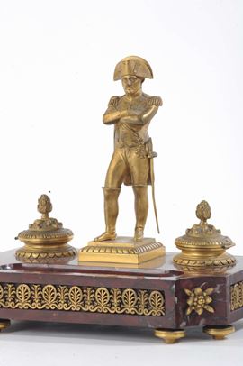 Calamaio in bronzo dorato e marmo rosso, inizio XX secolo