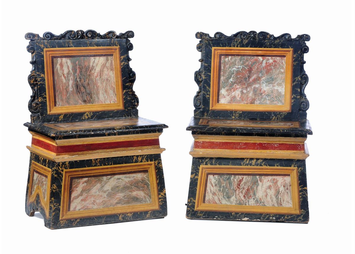 Coppia di panchette da centro dipinte a finto marmo, Roma XVIII secolo