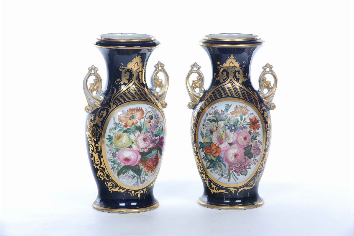 decoro su fondo blu in policromia a mitivo floreale entro riserve dorate, altezza cm 46