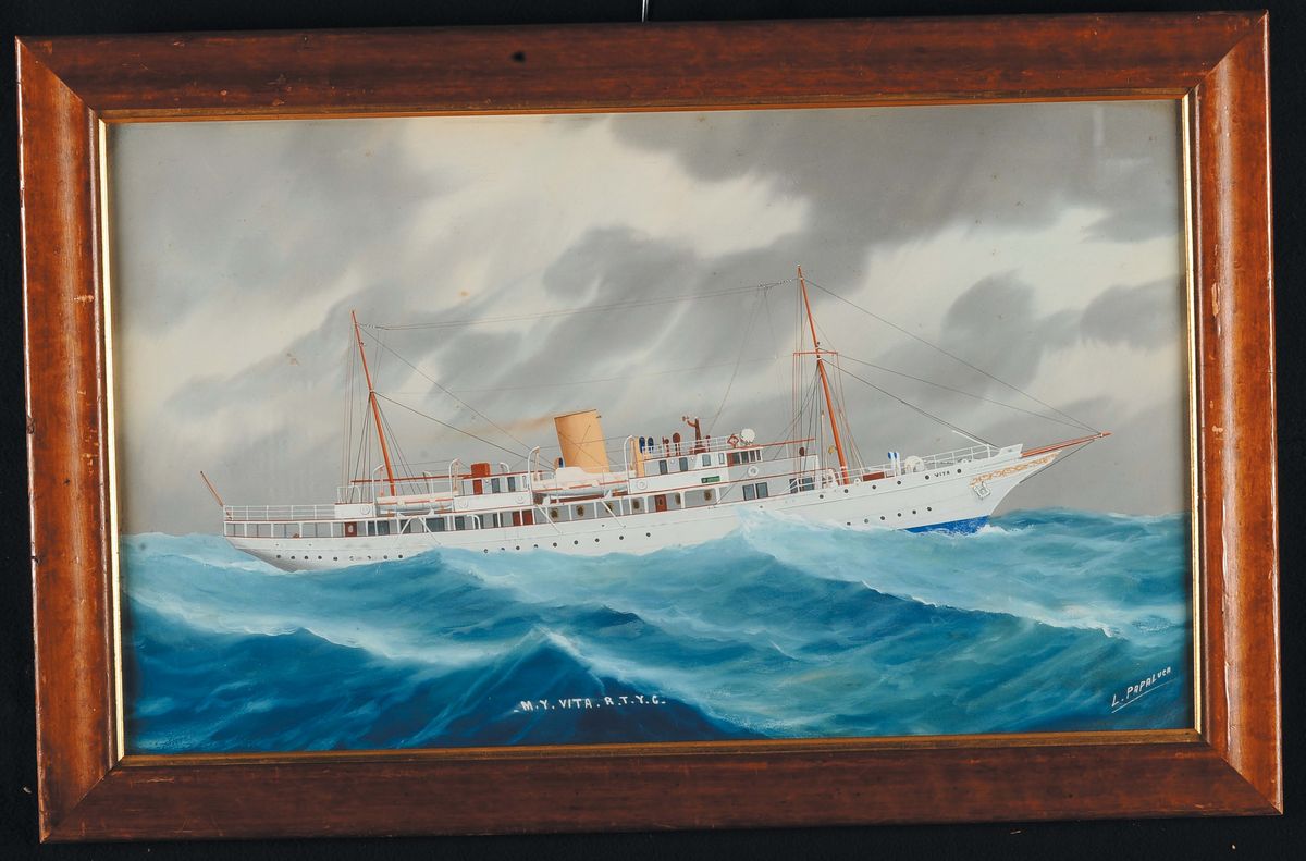 Luca Papaluca (1892-1934) Ritratto del motor Yacht Vita in navigazione