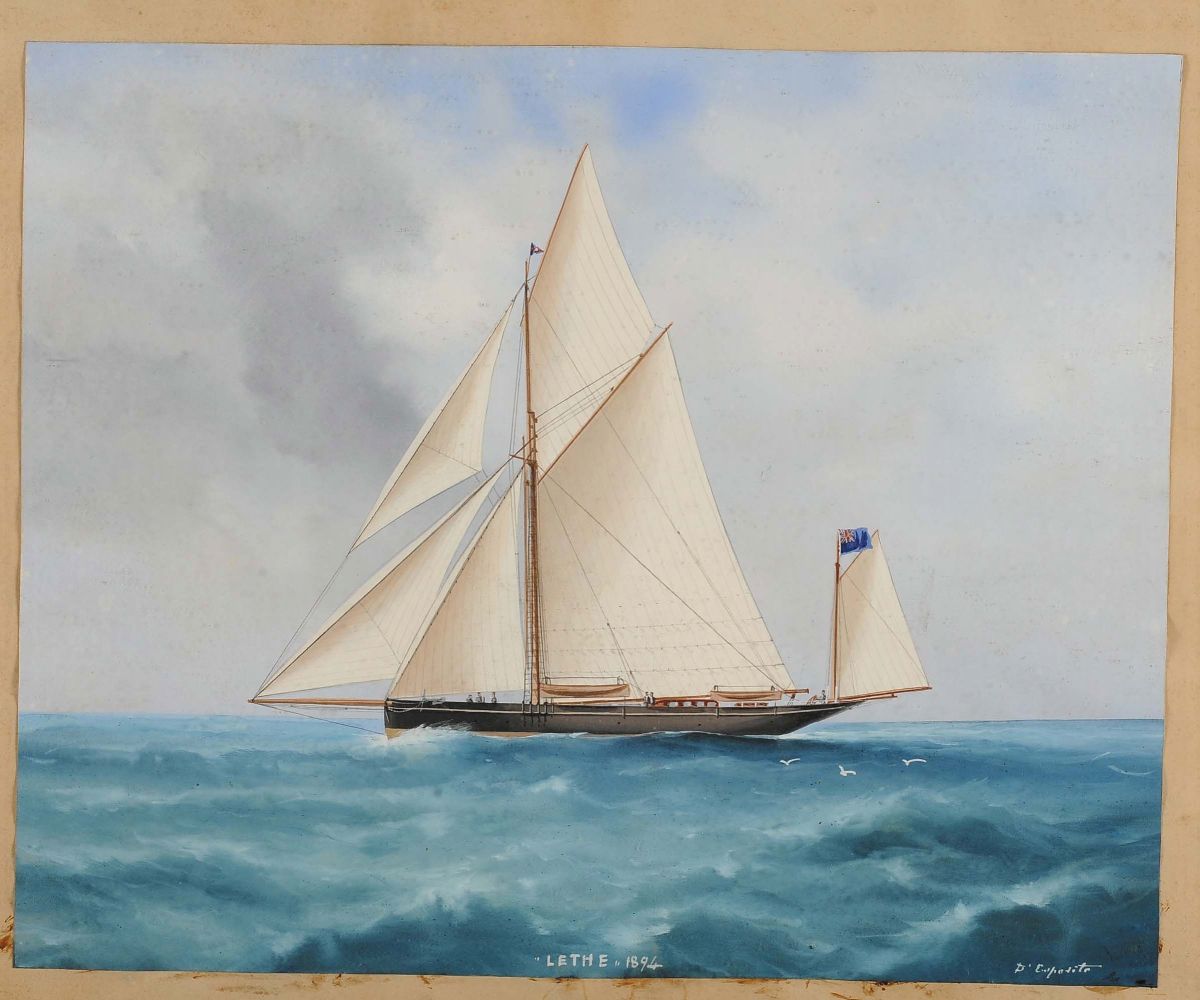 Vincenzo D'Esposito (1886-1946) Ritratto dello Yawl Lethe in mare calmo ed in mare in tempesta, 1894