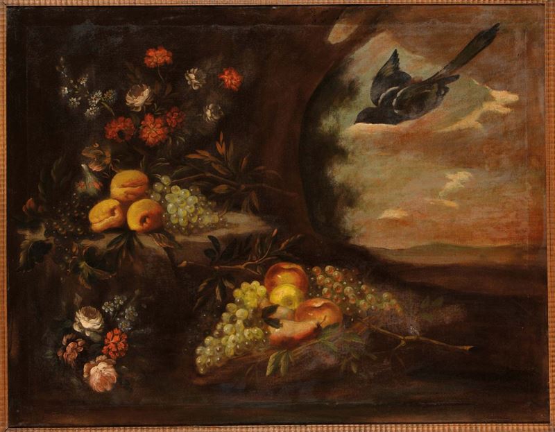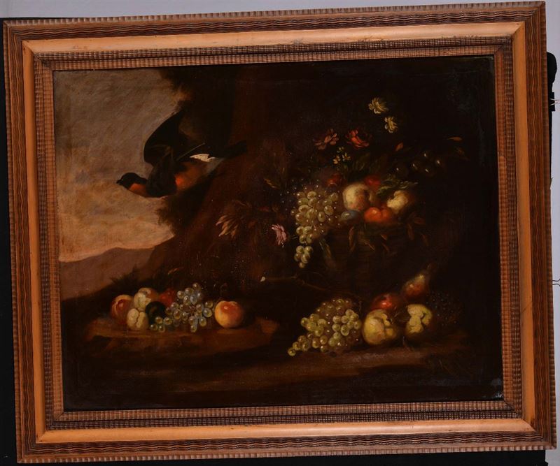 Anonimo del XVIII-XIX secolo Nature morte con fiori e frutta