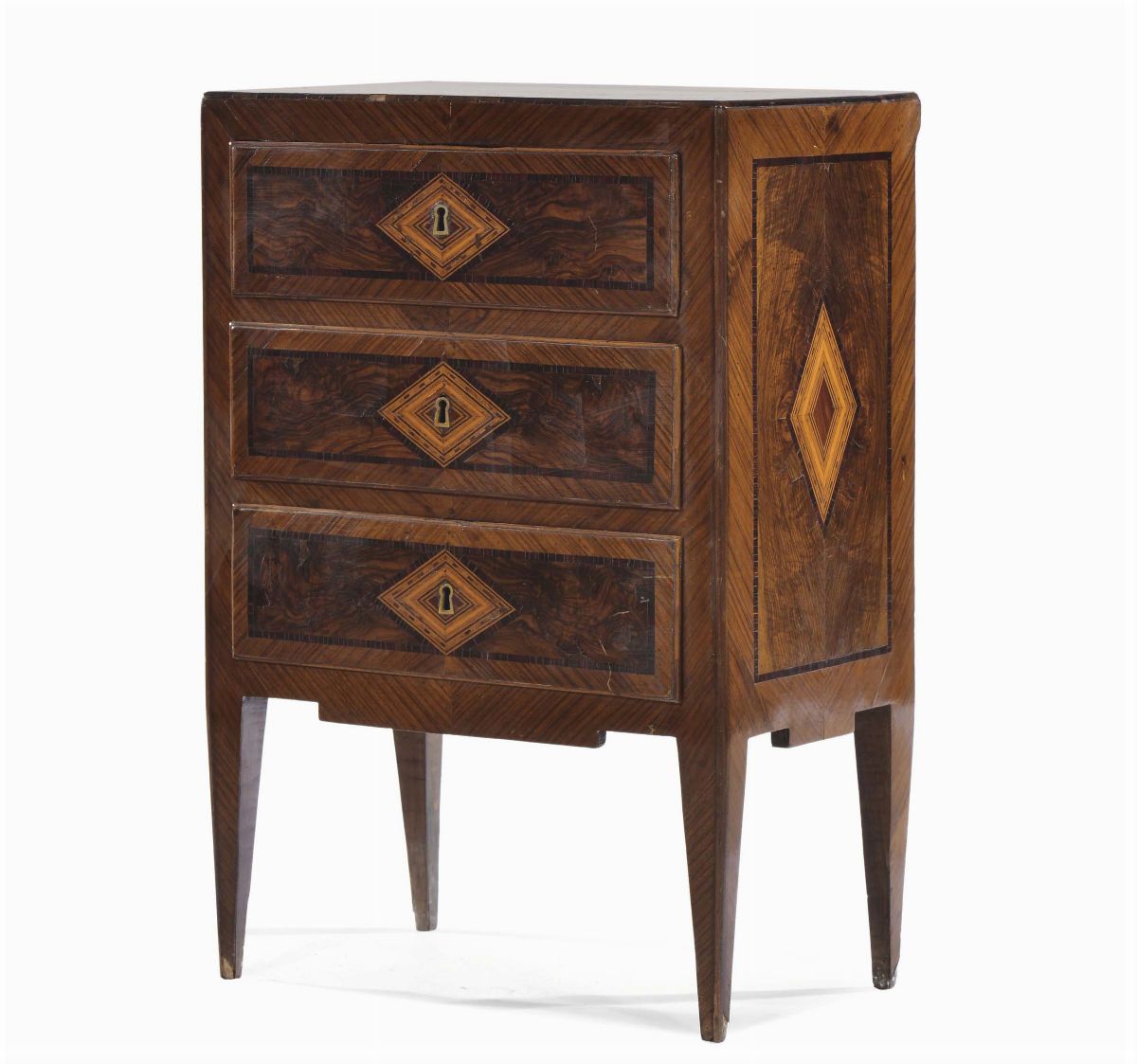 Comodino in stile Luigi XVI decorato con riserve a rombo, Napoli XVIII secolo
