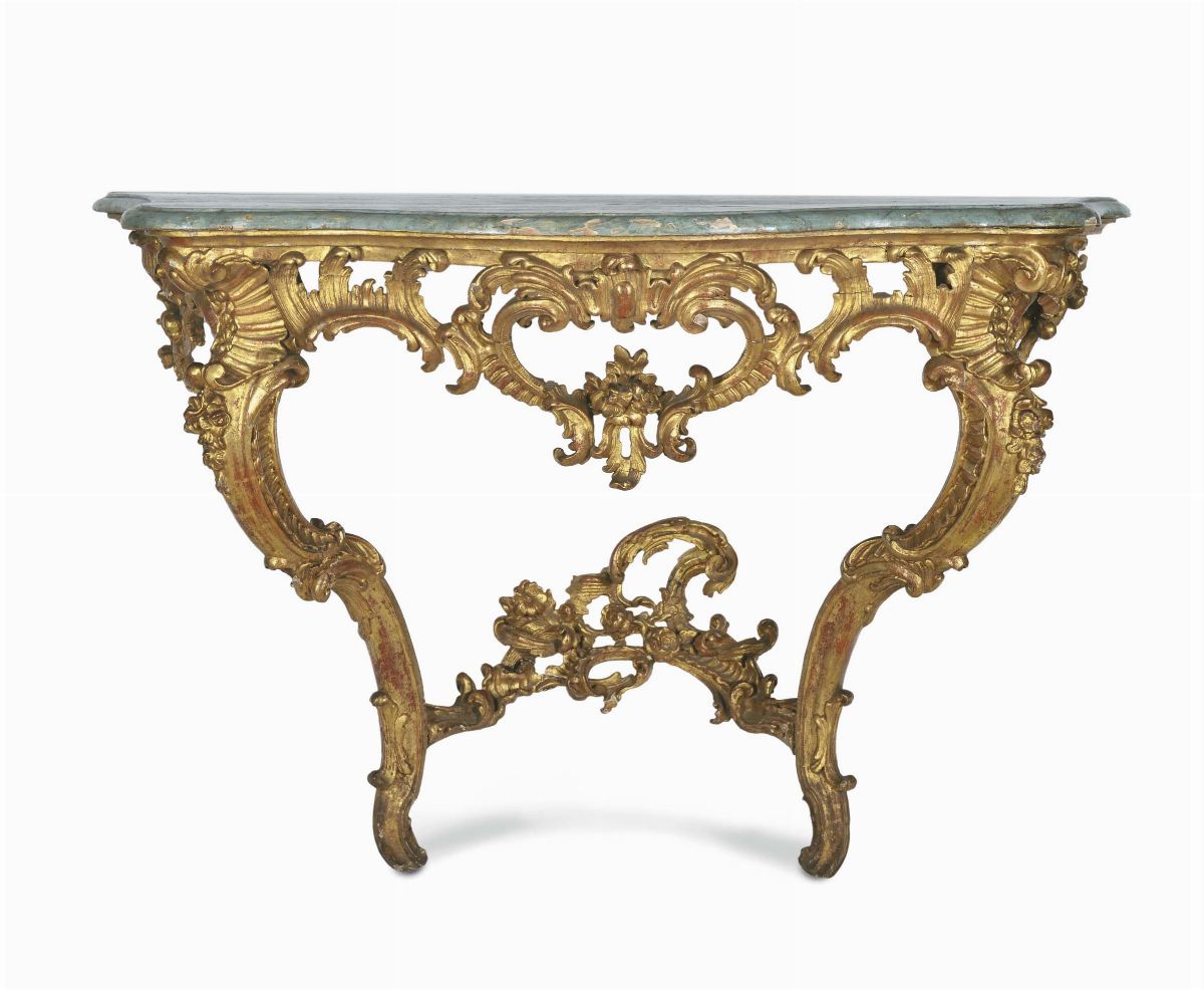 Console in legno intagliato e dorato, Francia XVIII secolo