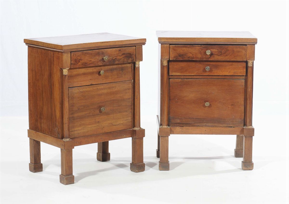 Coppia di comodini Impero in noce, XIX secolo