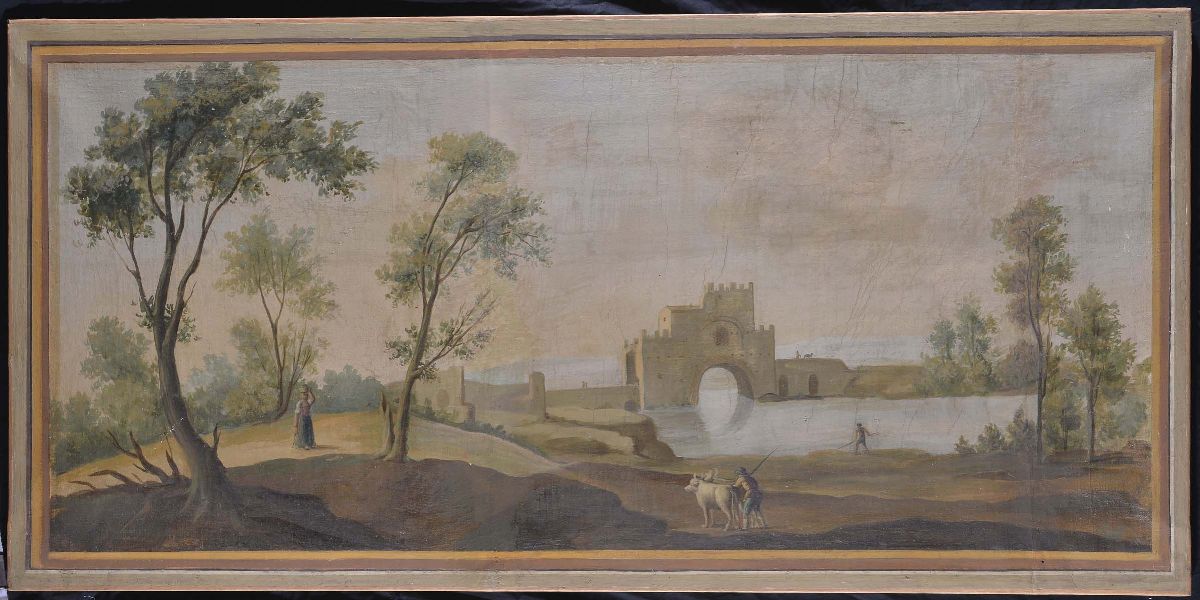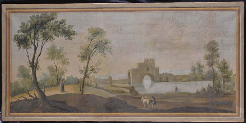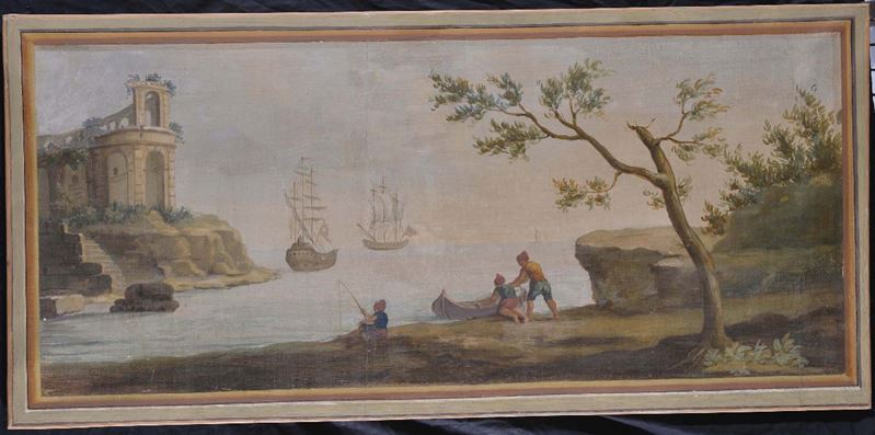 Coppia di dipinti sovrapporta con paesaggi costieri, XIX secolo