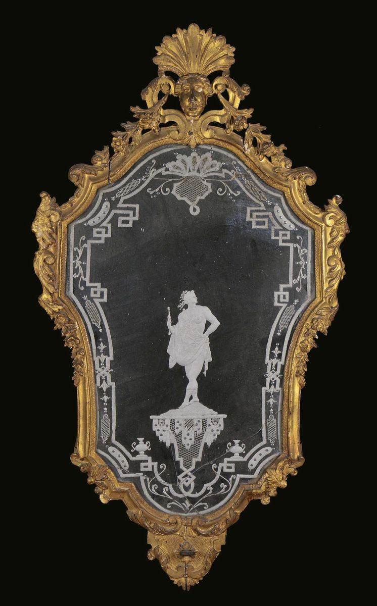 Coppia di specchierine in legno intagliato e dorato, XVIII secolo