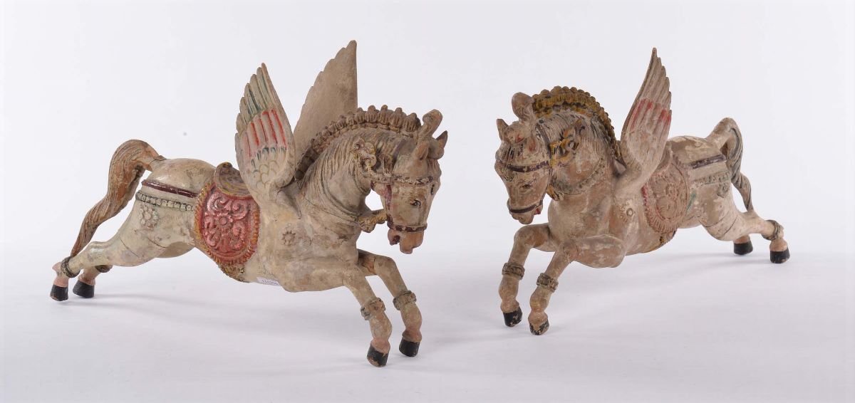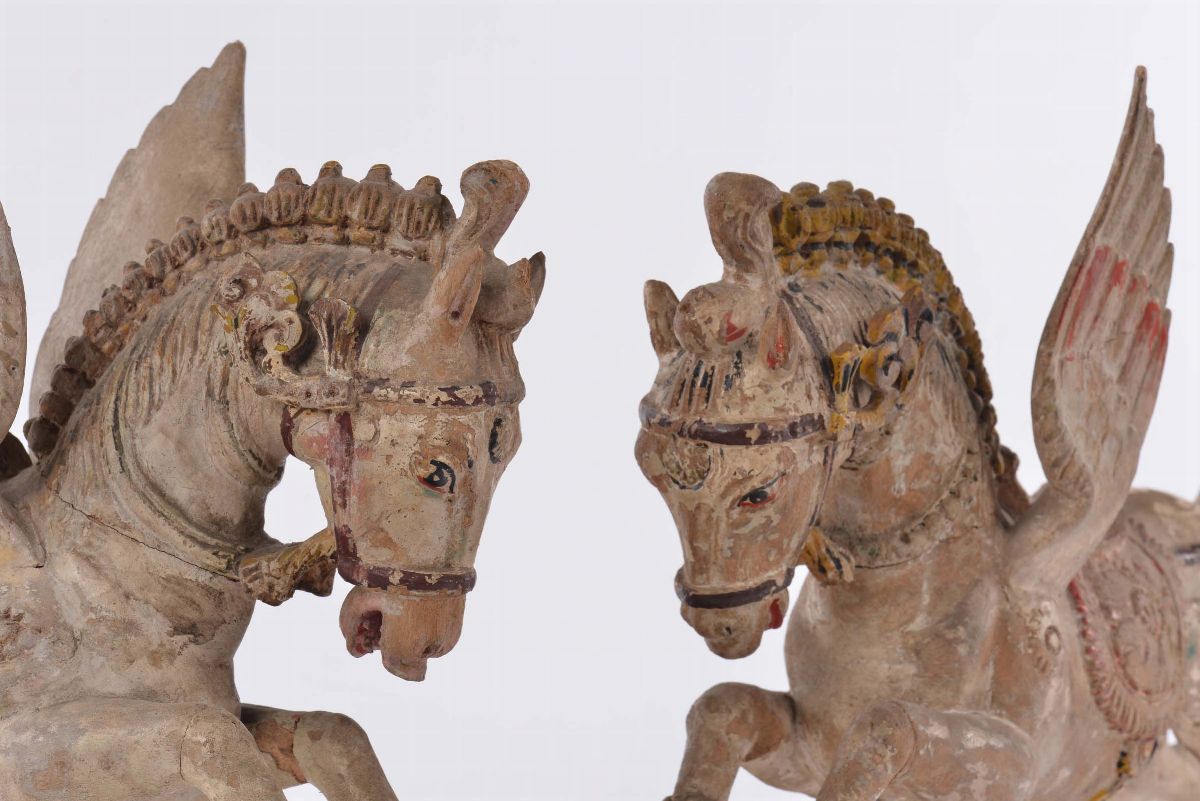 Due cavalli alati in legno policromo, India