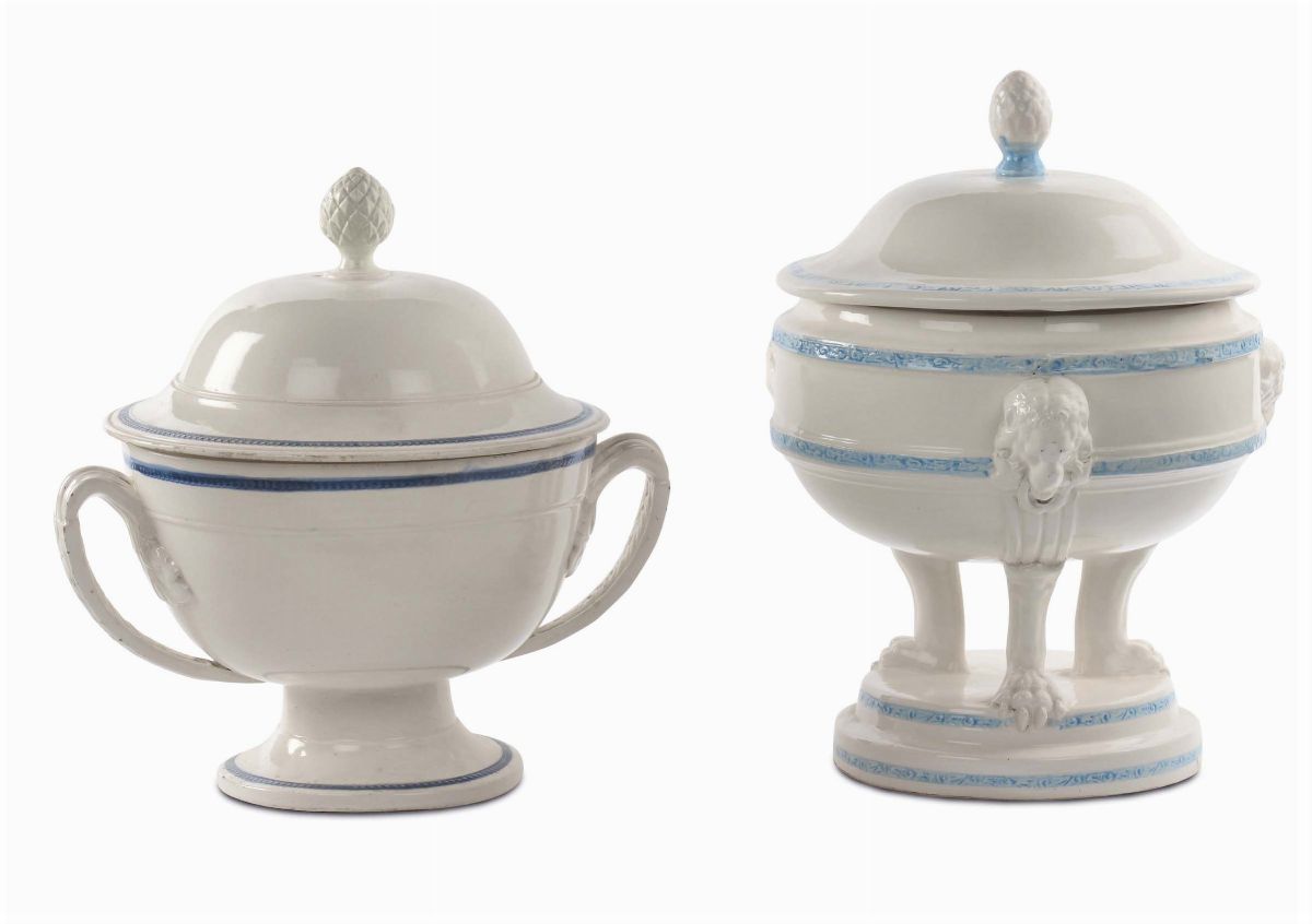 Due zuppiere diverse in terraglia, Napoli XIX secolo