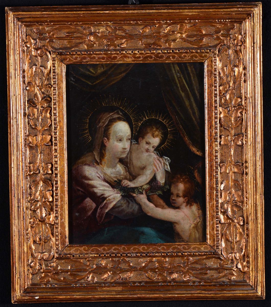 Giulio Clovio (1498-1578), scuola di Madonna con bambino e San Giovannino