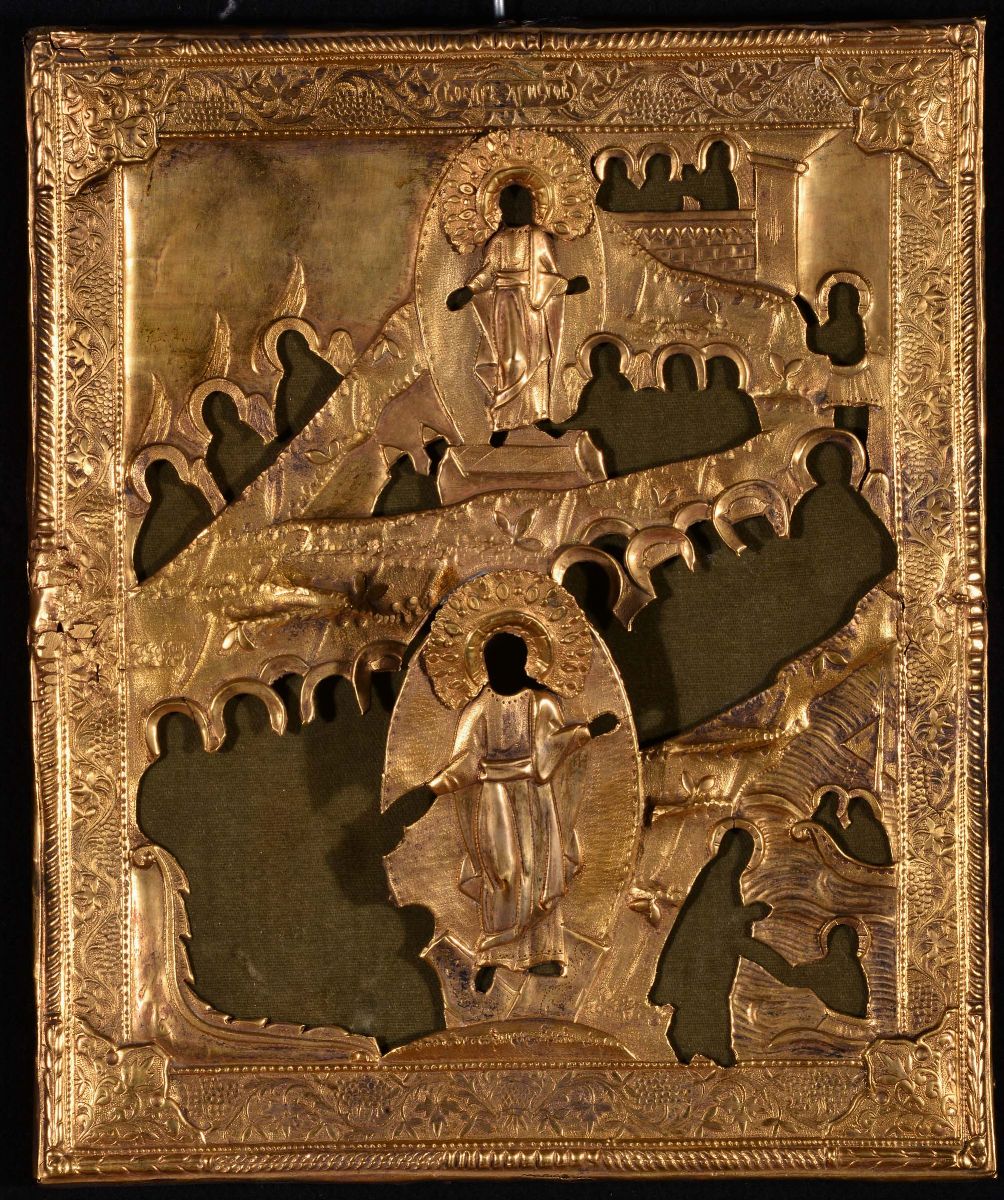 cm 30,5x25, nel lotto anche riza in metallo dorato