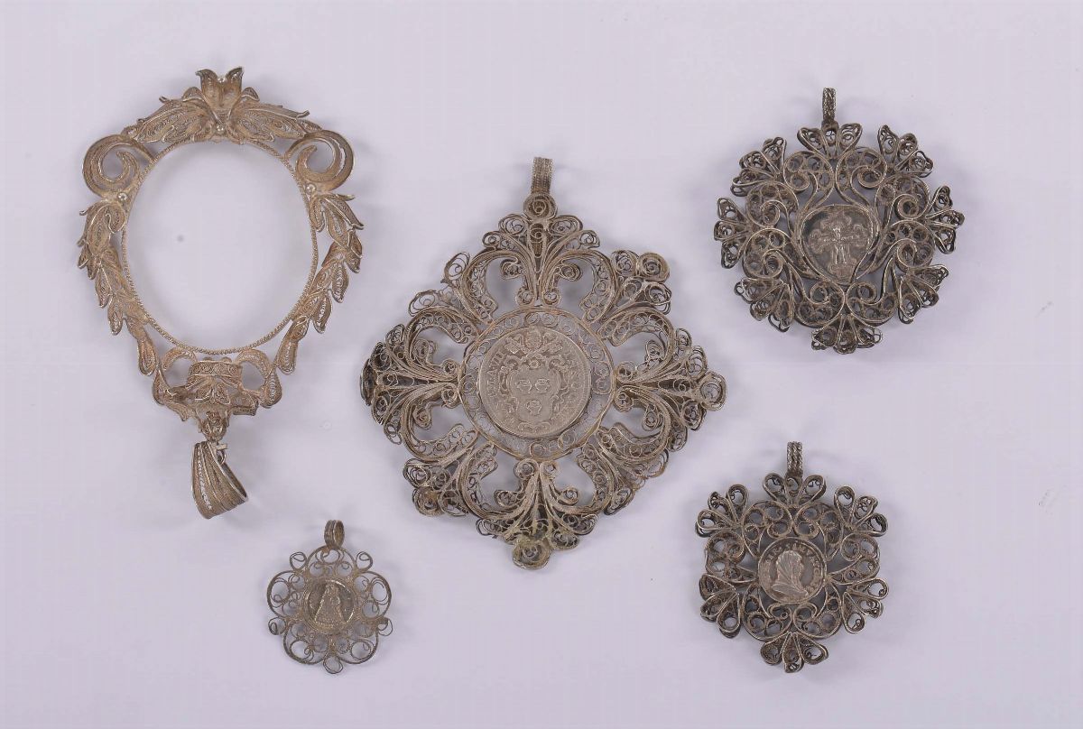 Lotto di cinque reliquiari in argento e filigrana, XVII secolo