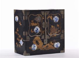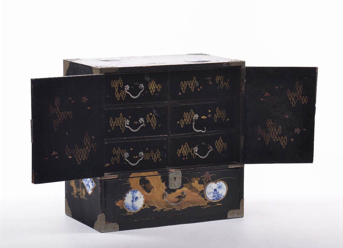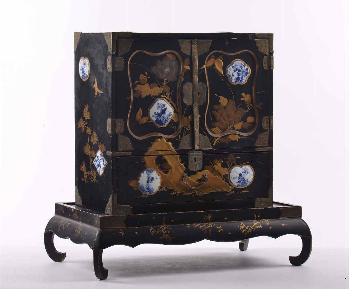 decoro a chinoiserie, applicazioni di porcellane, cm 36x20x37