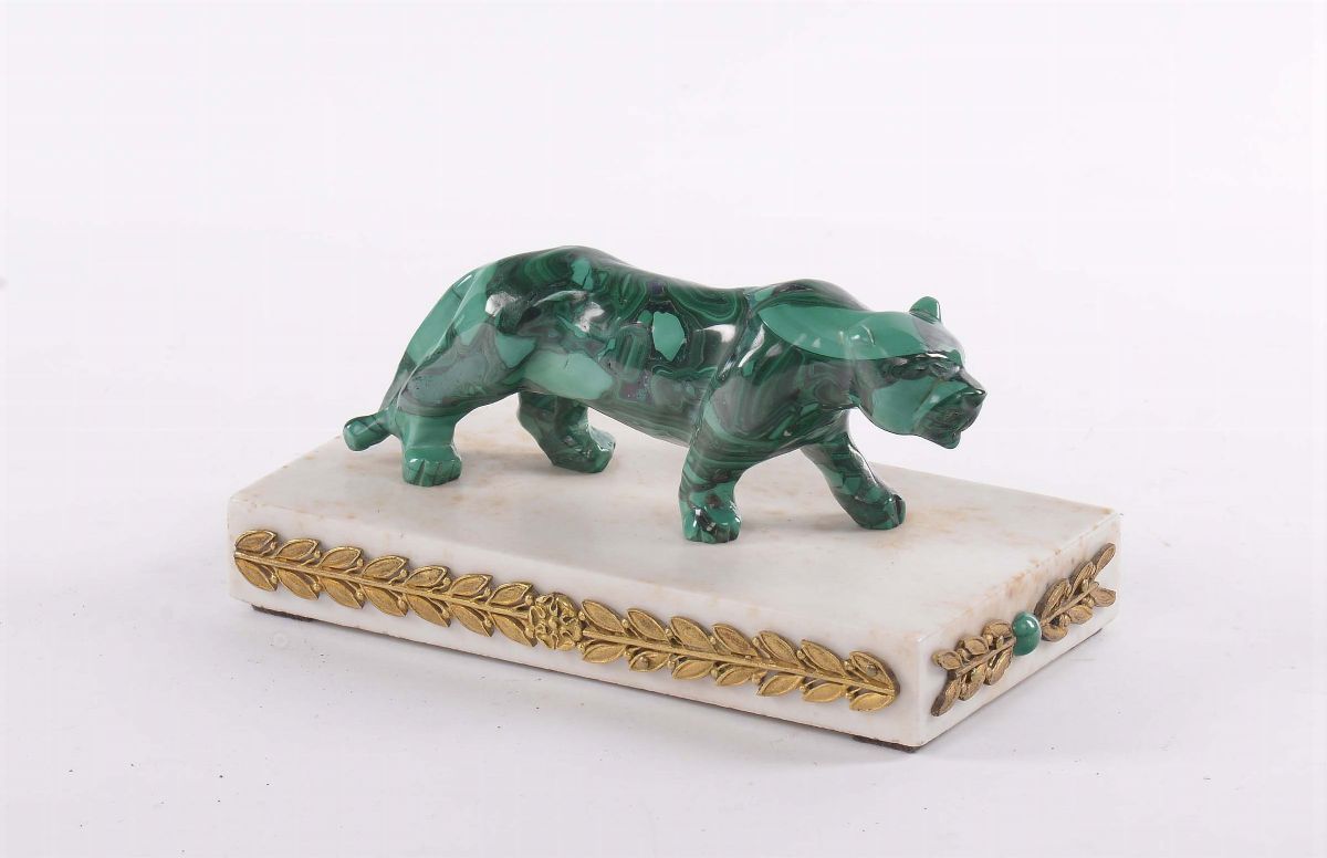lunghezza cm 15, su base in marmo con applicazioni di bronzo dorato