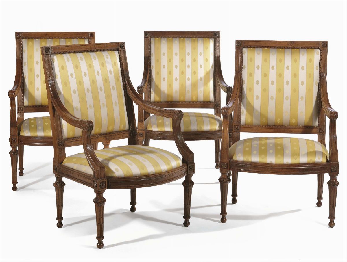 Quattro poltrone Luigi XVI in noce, Genova fine XVIII secolo