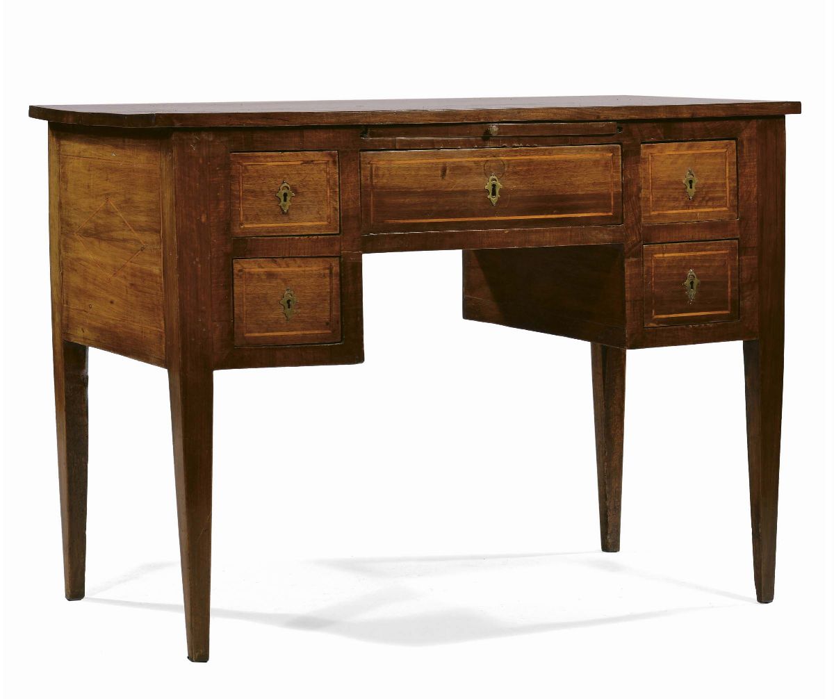 Scrittoio in noce con filettature in legno chiaro, Italia centrale XIX secolo