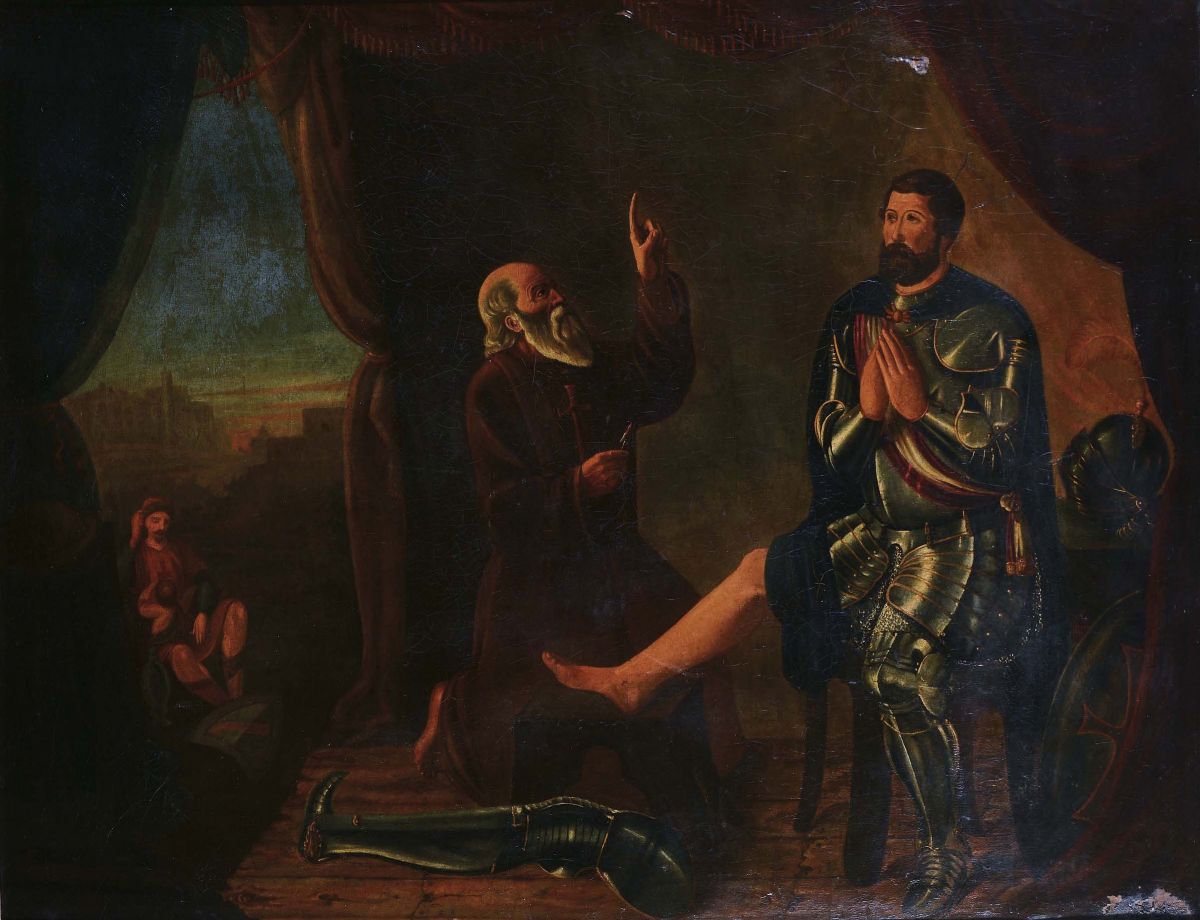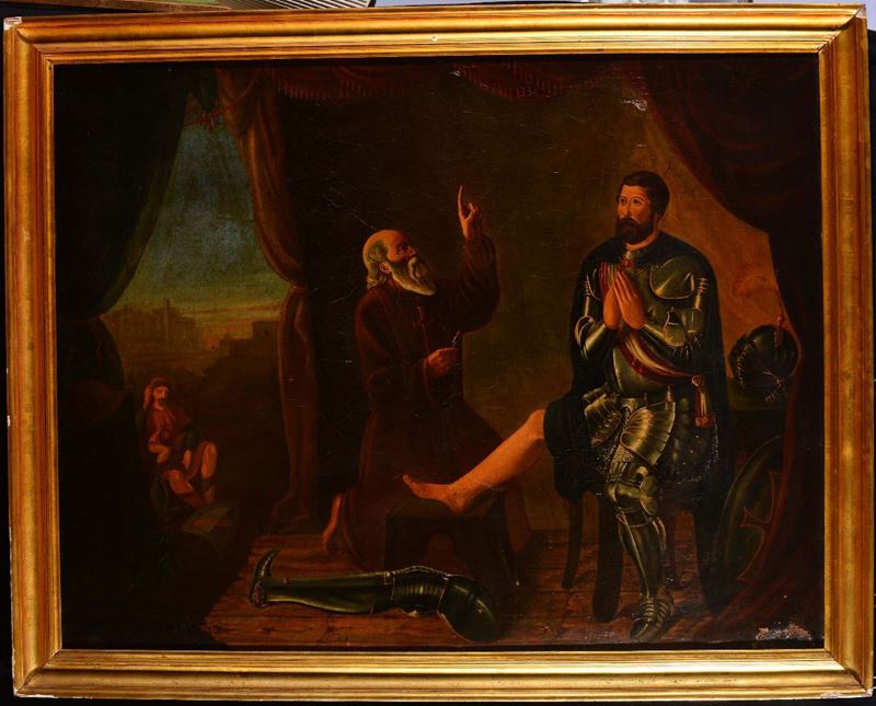 Scuola del XVIII secolo Guerriero ferito con religioso