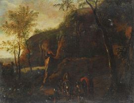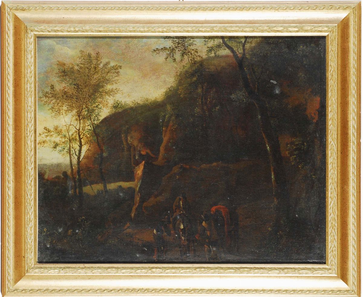Scuola del XVIII secolo Bambocciata nel bosco