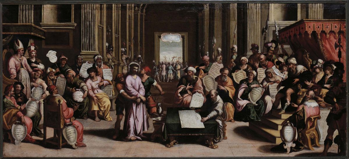 Scuola Italiana del XVII secolo Gesù davanti a Caifa