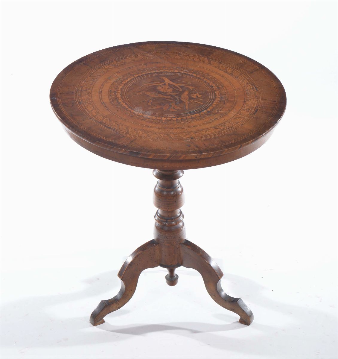 Tavolo sorrentino circolare interamente lastronato ed intarsiato