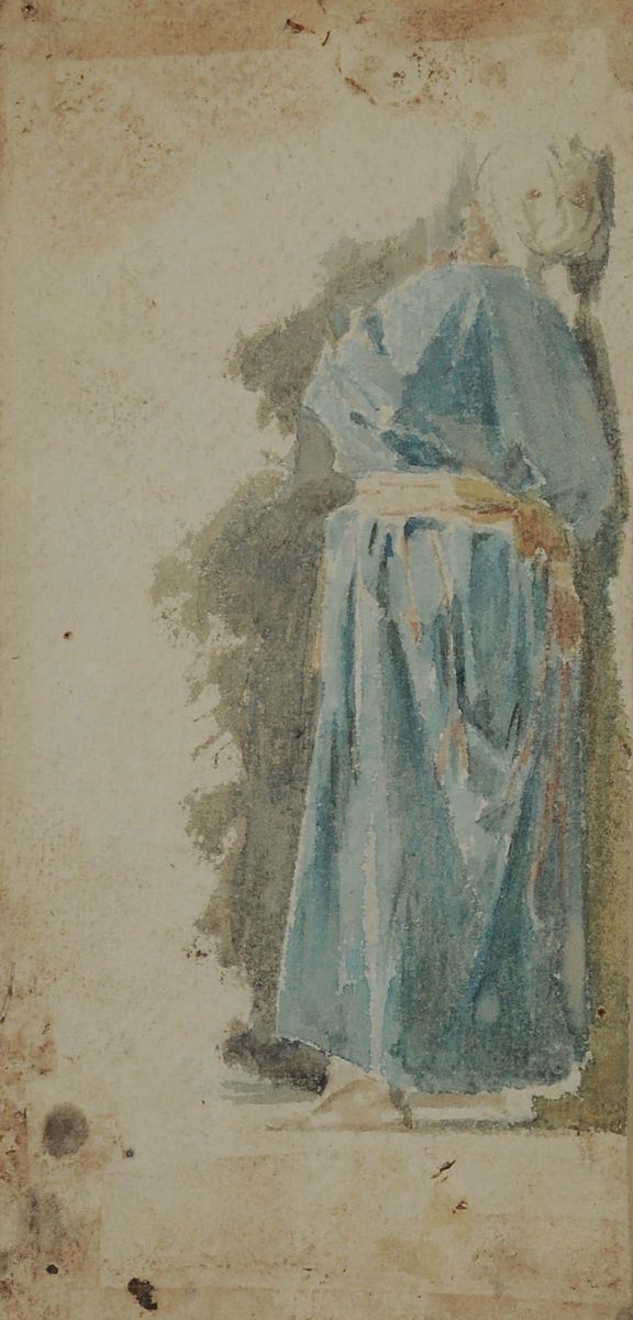 due disegni acquarellati raffiguranti uomini in vesti orientali, cm 24x11,5 e cm 26x11,5 circa