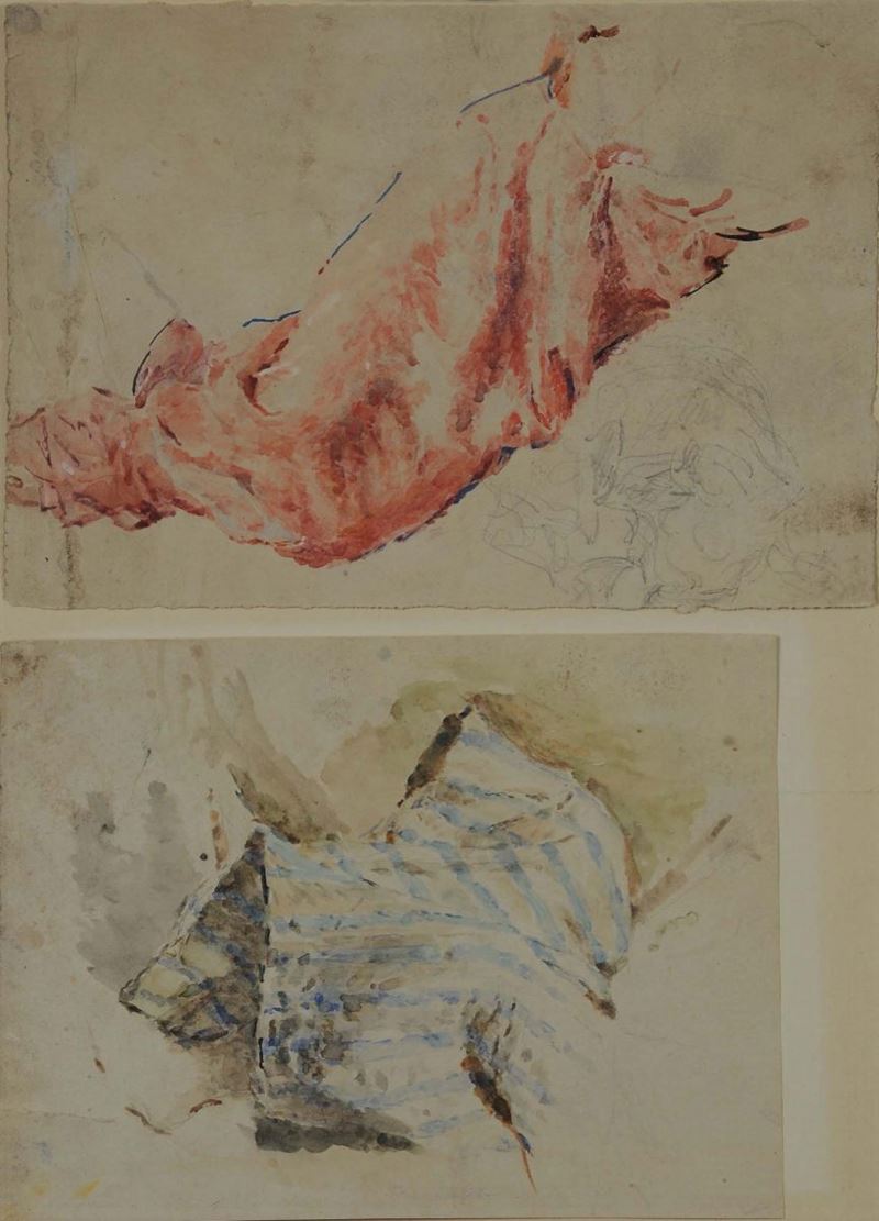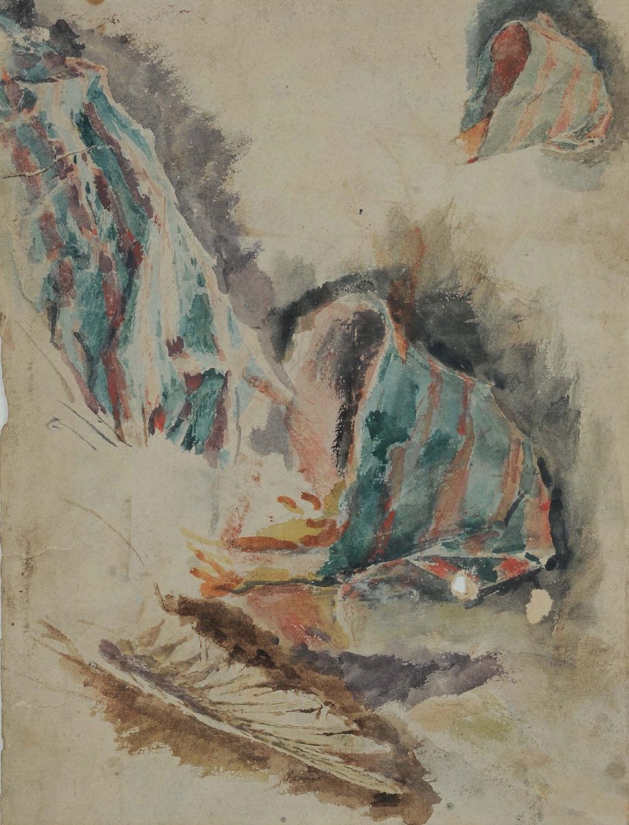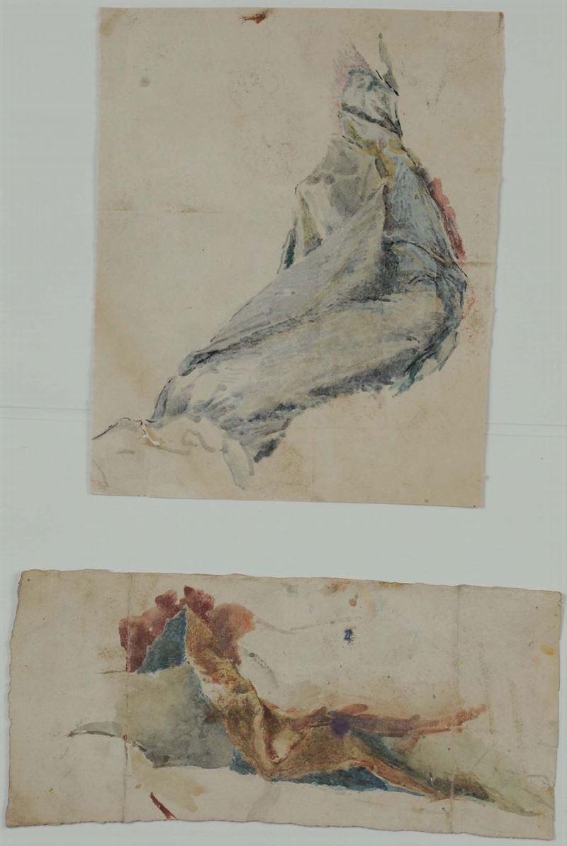 nove disegni acquarellati con studi di panneggi