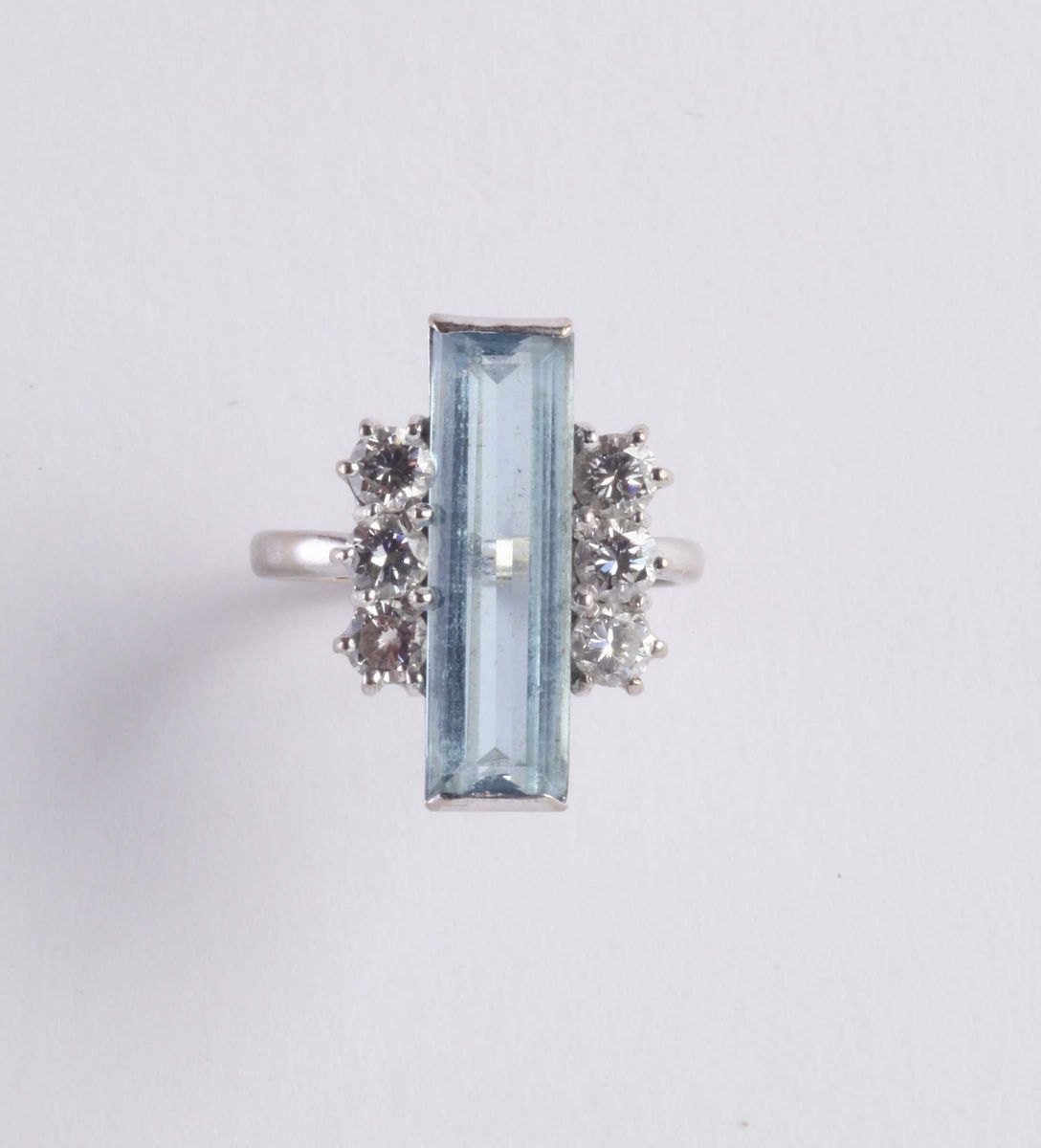 Anello con acquamarina e sei diamanti
