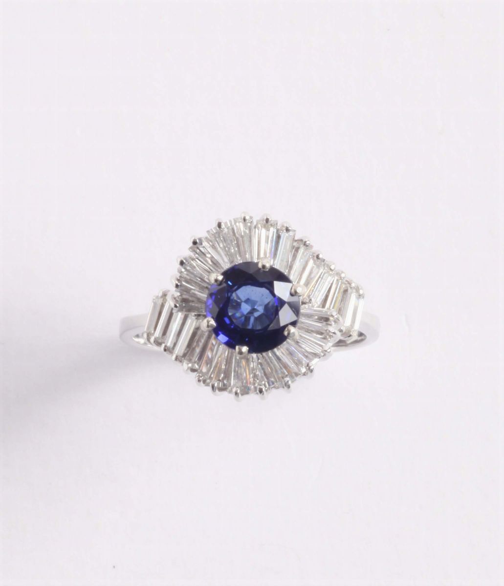 Anello con zaffiro di ct 1,70 e diamanti taglio tepper per ct 1,80. Anni '70