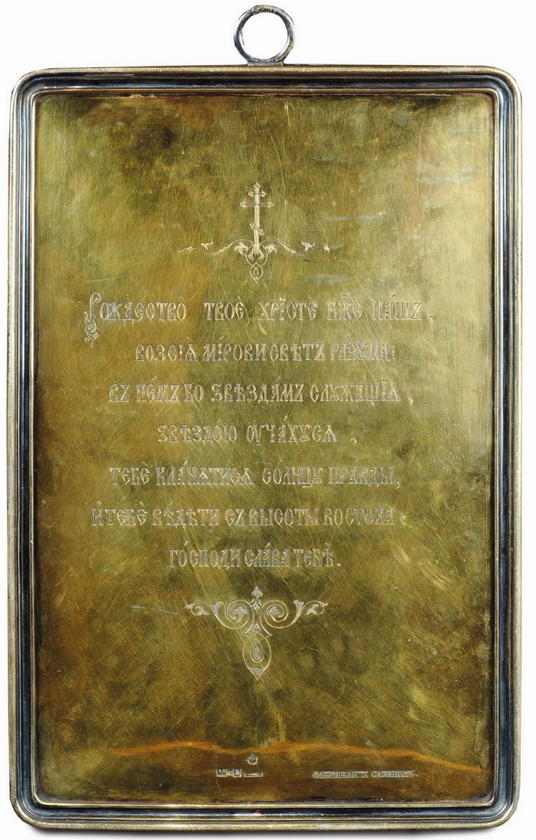 Grande placca in argento raffigurante adorazione dei pastori, I.P. Sazikov Mosca 1851