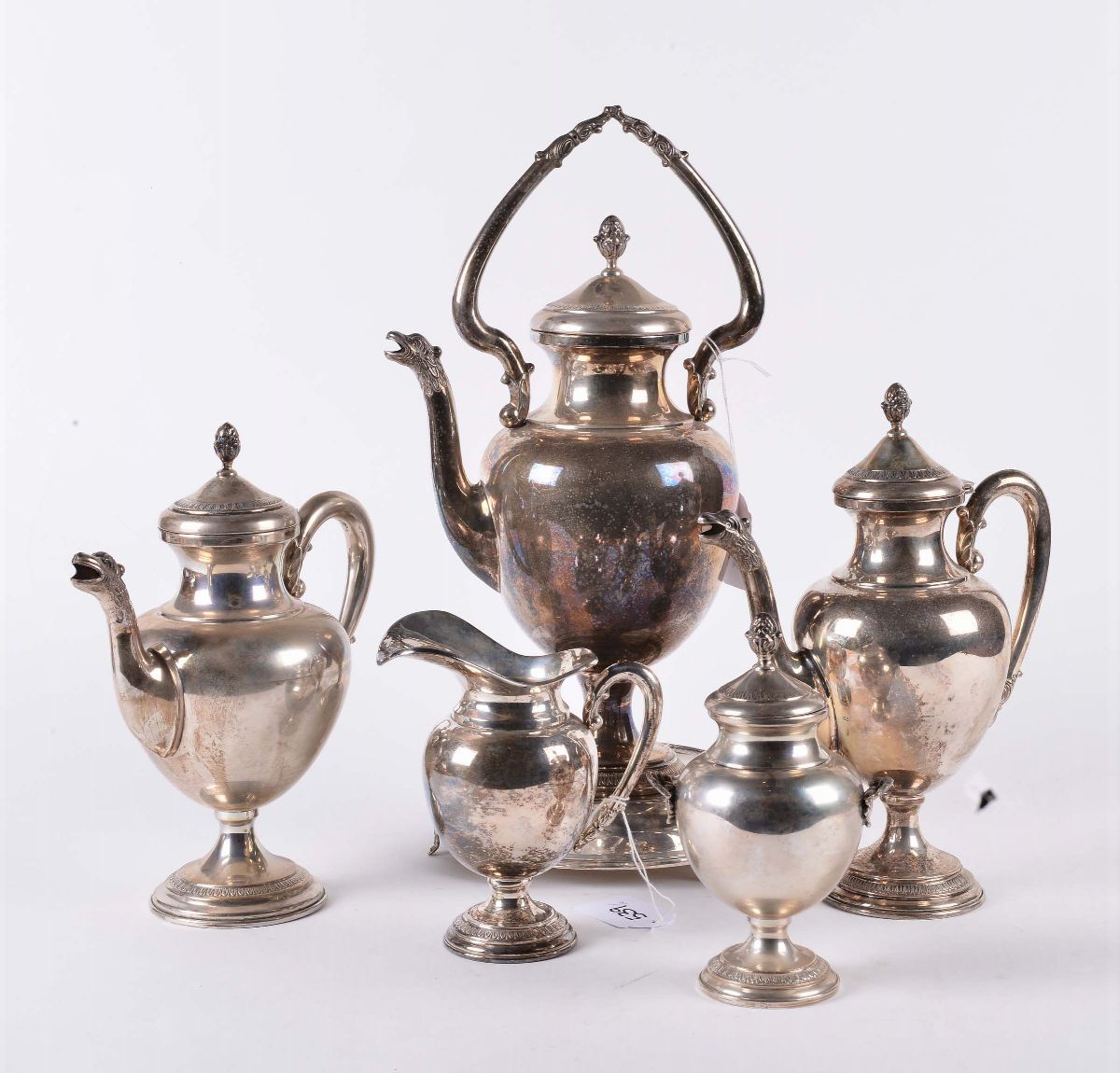 composto da teiera, caffettiera, samovar, lattiera e zuccheriera, gr. 1900 circa