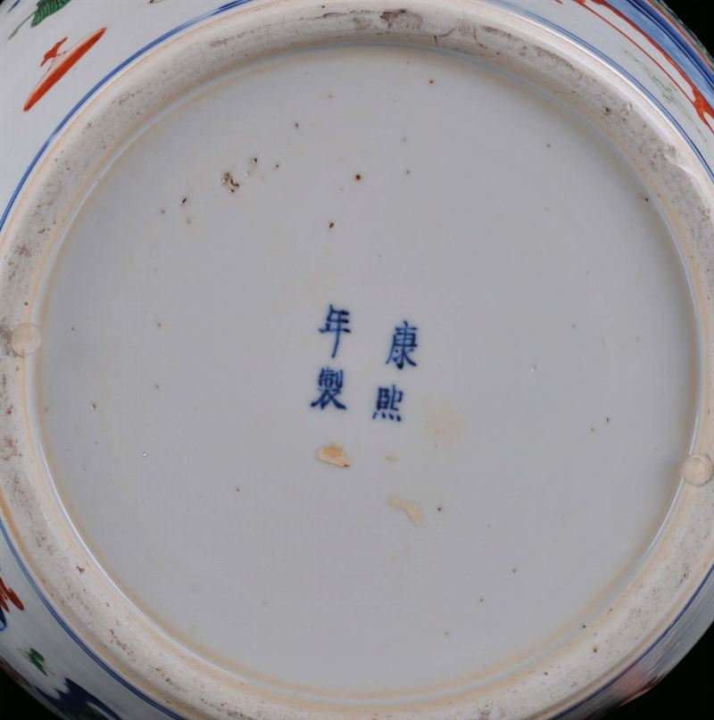 decorazione policroma con vasi, tavoli ed elementi vegetali, marca apocrifa Kangxi , h cm 36